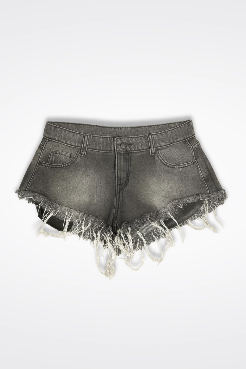 El clásico con un twist. Este mini short de jean gris tiene ese toque desflecado que amamos — canchero, versátil y con toda la onda.
